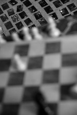 The chess pattern is also used in editing of the narrative montage, that is composed on the linguistic play on words and french/english back and forth of the protagonist's inner dialogue, mirroring her inner doubts in the phrasing of her identity.